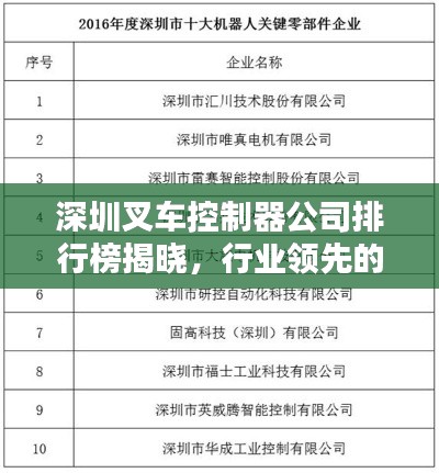 随着物流行业的快速发展,叉车作为重要的物流设备之一,其相关产业也在逐渐壮大,叉车控制器作为叉车的大脑,其性能和质量直接关系到叉车的运行效率和安全性,在深圳这个物流发达的城市,叉车控制器公司众多,本文将对深圳叉车控制器公司进行排名介绍。