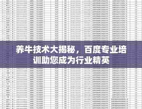 随着农业产业的不断发展,养牛业也日渐繁荣,对于想要从事养牛行业或者希望提高养牛技术的人来说,参加养牛技术培训是至关重要的,本文将为您介绍如何通过百度了解并参加养牛技术培训。