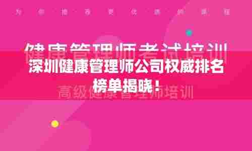随着人们对健康生活的追求日益增强,健康管理师行业逐渐兴起,深圳作为中国的经济特区,拥有众多优秀的健康管理师公司,本文将为您介绍深圳健康管理师公司的排名,以便您更好地了解这一领域的佼佼者。