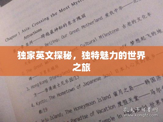 “独家英文”是一个充满魅力的世界,它代表着一种独特性、专属性和专有性,在这个多元化的时代,我们应该珍惜这种独特性,尊重每个国家和地区的文化和传统,通过学习和欣赏独家英文,我们可以更好地了解世界各地的文化,促进文化交流和融合,让我们一起探索这个充满魅力的世界,感受它的独特之处。