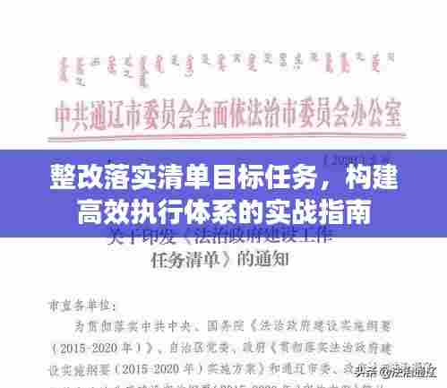 整改落实清单目标任务对于构建高效执行体系具有重要意义,通过明确任务目标、制定具体措施和时间表、落实责任等步骤,我们可以确保整改工作有序开展,在实施过程中,要加强组织领导、监督检查、信息沟通和宣传引导,确保整改措施得到有效执行,只有这样,我们才能实现整改工作的目标,推动组织或企业的持续发展。