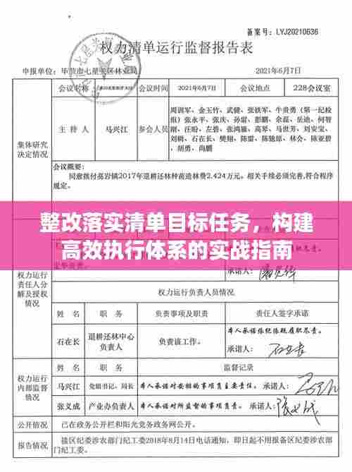 在当今社会,目标任务的落实与整改工作日益受到重视,面对复杂多变的国内外环境,我们必须以更高的标准、更严的要求,确保每一项决策和计划都能得到精准实施,为此,制定整改落实清单目标任务,成为我们构建高效执行体系的关键一环,本文将围绕这一主题展开,探讨如何制定和实施整改落实清单目标任务。