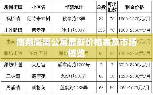 随着疫情的发展和防控措施的实施,隔离公寓的需求逐渐上升,南翔地区作为上海市的重要区域,其隔离公寓的需求和价格备受关注,本文将介绍南翔隔离公寓的最新价格表及相关市场情况,为需要的人士提供参考。