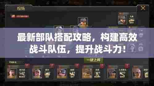 在各类游戏中,采集部队的搭配往往决定了玩家在游戏中的效率和竞争力,一个合理的采集部队搭配不仅能提高资源获取速度,还能在战斗中发挥出强大的战斗力,本文将为大家带来最新的采集部队搭配攻略,帮助大家构建高效战斗队伍。