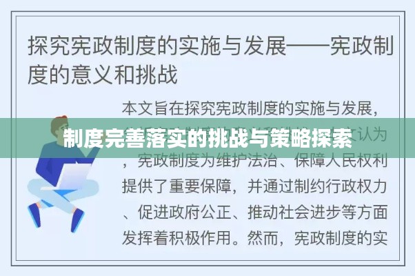 针对制度的完善落实问题,我们需要采取综合策略,加强制度建设,提高制度本身的科学性和适应性,强化制度意识,使遵规守矩成为全社会的共同价值观,加强执行力度,确保制度落到实处,建立健全反馈机制,及时发现问题并进行改进。