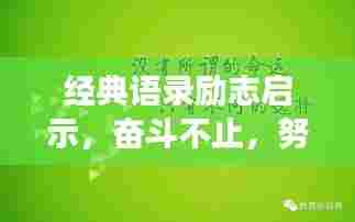在人生的旅途中,我们时常需要一些励志的话语来鼓舞自己的士气,激发自己的潜能,经典语录中蕴含着许多励志和努力的智慧,它们像明灯一样指引我们在困境中前行,以下是一些关于励志努力的经典语录,希望能为大家带来正能量和启示。