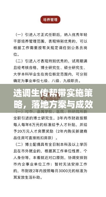 在当前社会背景下,选调生作为党和政府的重要人才储备,其培养与发展显得尤为重要,为了提升选调生的综合素质和业务能力,确保他们在实际工作中能够迅速适应角色,发挥积极作用,“选调生传帮带落实方案”应运而生。