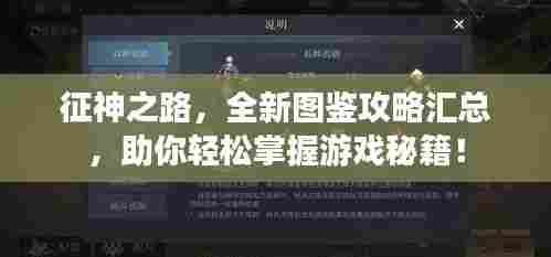 随着游戏版本的更新,征神之路也迎来了全新的内容,本文将为大家带来最新的图鉴攻略,帮助大家了解新内容,快速掌握游戏节奏,本文将详细介绍新推出的英雄、装备、地图以及战术策略等,让大家在游戏中更加得心应手。