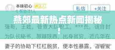 燕郊作为北京市的一个重要组成部分,一直以来都是人们关注的焦点,燕郊地区发生了一系列新闻事件,引起了广泛关注,本文将对燕郊最近的新闻头条进行梳理和介绍。
