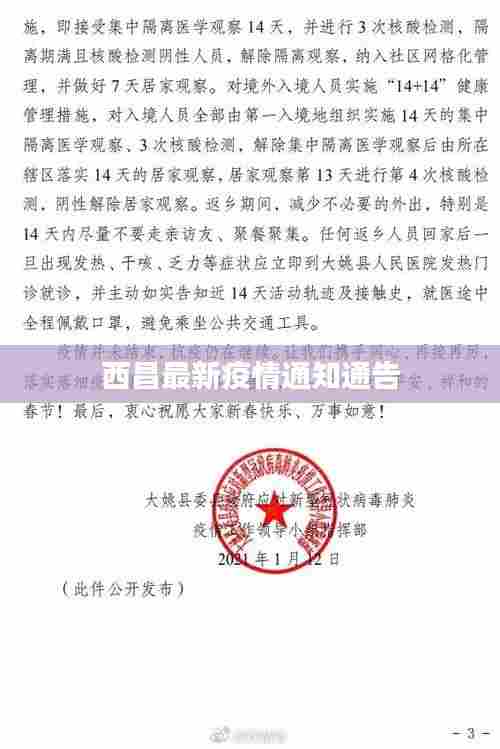 西昌市疫情防控形势严峻,为了保障广大市民的健康安全,政府及时发布了最新的疫情通知,本文将为大家介绍西昌今日疫情通知的最新内容。