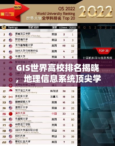 随着地理信息系统(GIS)技术的飞速发展,全球各大高校在GIS领域的实力也日益受到关注,GIS世界高校排名成为众多学子关注焦点,它不仅反映了各校在GIS领域的科研实力,也为学生选择深造提供了重要参考,本文将探讨GIS世界高校排名背后的意义、排名依据以及几所顶尖学府在GIS领域的卓越贡献。