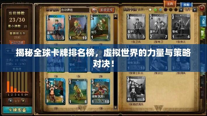 随着科技的进步和游戏行业的发展,虚拟世界也在不断地革新和进化,未来的卡牌游戏将更加丰富多彩,卡牌的技能和属性也将更加多样化,我们可以期待更多的创新卡牌出现,为玩家们带来更多的惊喜和挑战,卡牌的排名也将随之变化,展现出更加激烈的竞争。