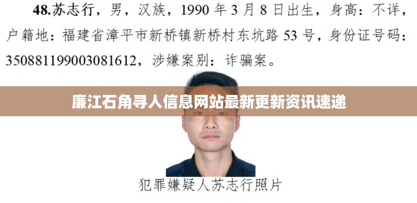 随着互联网的普及和社交媒体的快速发展,各类信息网站在人们的生活中扮演着越来越重要的角色,特别是在寻人寻亲的过程中,信息网站的力量不可忽视,关于“廉江石角寻人信息”的话题备受关注,本文将围绕这一主题,介绍相关的最新动态。