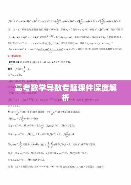 高考数学导数专题课件是帮助学生理解和掌握导数知识的重要工具,通过导数专题课件的学习,学生可以更好地掌握导数的概念、性质和应用,提高解题能力,教师在制作和使用导数专题课件时,应注重内容的系统性、逻辑性和实用性,确保课件的质量和效果。
