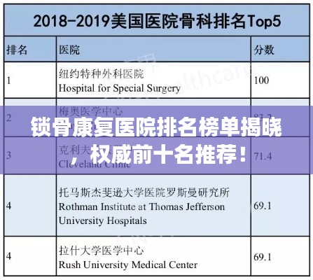 锁骨骨折是一种常见的运动损伤,对于患者来说,选择一家专业的康复医院进行康复是至关重要的,本文将介绍全国锁骨康复医院排名前十名,为广大患者提供参考。