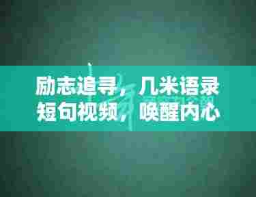 在这个瞬息万变的时代,我们时常感到迷茫和焦虑,为了寻找内心的力量和方向,许多人开始关注励志视频,而几米语录短句励志视频便是其中的一股清流,这些视频以简洁、深刻的语录为内容,传递着正能量和勇气,激励我们在人生的道路上不断前行。