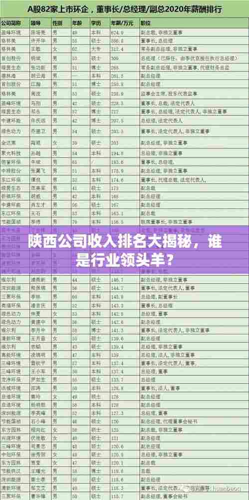 随着经济的飞速发展,陕西省各大公司的收入排名成为了人们关注的焦点,本文将为您揭示陕西公司收入排名的奥秘,带您了解这些企业的辉煌成就和背后的故事。