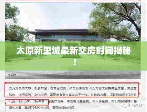 随着太原城市的不断发展和扩张,新里城作为太原市的一个重要项目,一直备受关注,关于新里城的交房时间,有很多市民咨询和关注,本文将为大家带来太原新里城交房时间的最新消息。