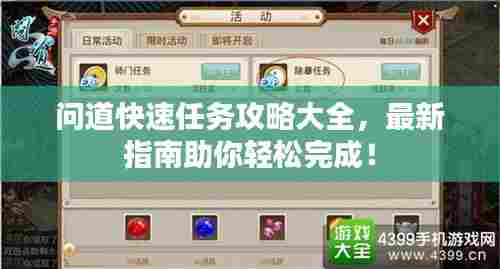 《问道》作为一款热门的角色扮演游戏,拥有庞大的玩家群体,在游戏中,玩家需要完成各种任务来提升自己的角色能力,获取丰厚的奖励,本文将为大家分享一些最新的快速任务攻略,帮助玩家高效完成任务,提升游戏体验。