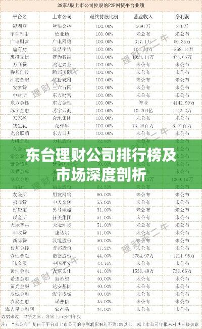 随着经济的蓬勃发展,东台市的理财市场逐渐受到广泛关注,近年来,各类理财公司在东台如雨后春笋般涌现,为投资者提供了多样化的投资渠道和专业的理财服务,本文将探讨东台理财公司的排名及相关市场概况。