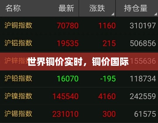 铜作为一种重要的工业金属,广泛应用于建筑、电力、交通和电子等行业。全球铜价受到多种因素的影响,包括供需关系、宏观经济状况、货币政策、市场情绪等。实时了解世界铜价对于投资者和行业参与者至关重要。