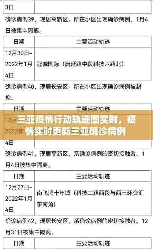随着新冠疫情在全球范围内的持续蔓延,我国各地纷纷采取了一系列严格的防控措施。三亚作为我国著名的旅游城市,近期也出现了一些新增病例。为了更好地掌握疫情动态,三亚市卫生健康委员会联合相关部门,推出了“三亚疫情行动轨迹图实时”服务,旨在为广大市民和游客提供及时、准确的疫情信息。