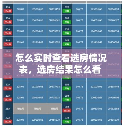 在房地产市场,选房情况表是购房者了解项目房源实时状态的重要工具。随着房地产市场的日益活跃,购房者对于如何实时查看选房情况表的需求也越来越高。本文将为您详细介绍如何实时查看选房情况表,帮助您及时掌握房源动态,做出明智的购房决策。