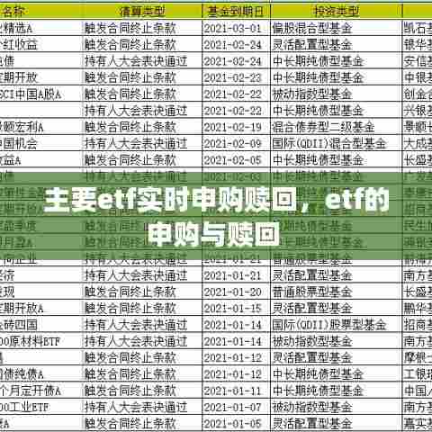 ETF(交易所交易基金)是一种在交易所上市交易的、跟踪特定指数的开放式基金。ETF具有交易便捷、费用低廉、流动性好等特点,深受投资者喜爱。ETF的申购赎回机制是其运作的核心之一,其中实时申购赎回是指投资者可以在交易时间内进行ETF的申购和赎回操作,即时反映市场供需关系。