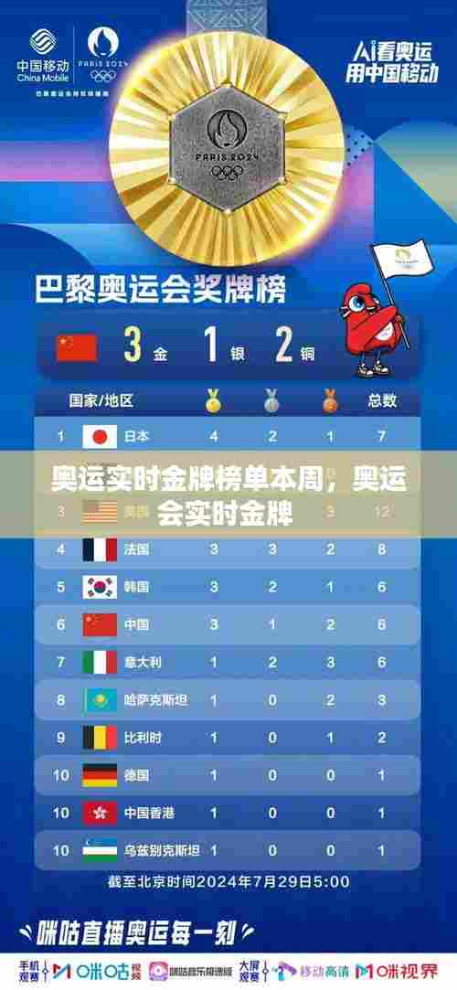 奥运实时金牌榜单本周概览