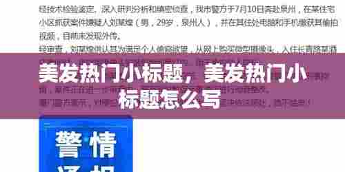 美发热门小标题作为一种网络文化现象,已经成为现代传播的重要手段。在撰写标题时,我们需要把握其特点和技巧,既要追求吸引力,又要保证内容的真实性。只有这样,才能在众多信息中脱颖而出,赢得读者的青睐。