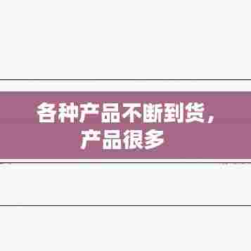总之,在这个充满活力的时代,各种产品不断到货,为我们的生活带来了无尽的便利和惊喜。无论是电子产品、家居用品还是时尚配饰,各种新品都在满足消费者的需求。作为消费者,我们应该紧跟潮流,选择适合自己的产品,提升生活品质。