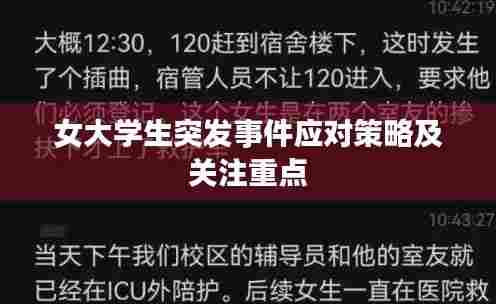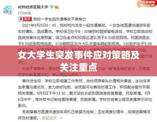 女大学生突发事件的应对与关注是一个长期且艰巨的任务,我们需要从心理健康教育、安全意识提高、应对能力培训等方面入手,为女大学生提供全面的支持,社会各界也应给予足够的关注和支持,共同为女大学生创造一个安全、和谐的环境,只有这样,我们才能有效地减少女大学生突发事件的发生,让她们健康、快乐地成长。