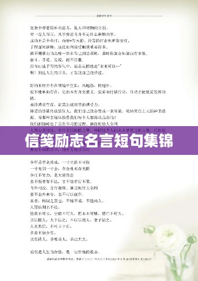 三十、 人生需要勇气,需要冒险精神,只有敢于尝试新事物,才能收获新的成果和新的体验,信笺中的这些励志语录短句,希望能激励你在人生的旅途中勇往直前,不断追求自己的梦想和目标,无论你遇到多少困难和挑战,都要坚持信念,勇往直前,因为成功永远属于那些不放弃的人。