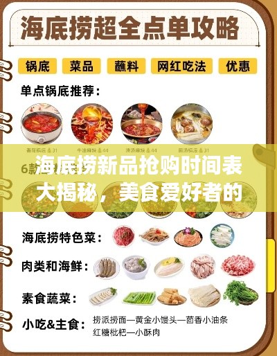 对于众多美食爱好者来说,海底捞新品抢购时间表最新信息的发布无疑是一场盛宴的邀请函,本文将为您详细介绍海底捞新品的最新抢购时间表,让您轻松掌握最新动态,尽享美食盛宴。