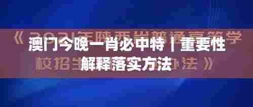 标题:澳门今晚一肖必中特重要性解释落实方法