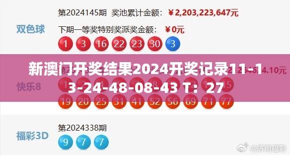 本次抽查的开奖数据为“新澳门开奖结果2024机选测试——2024年机选游戏开奖记录”,其开奖号码为:11-13-24-48-08-43,特别号码(T:)为27。