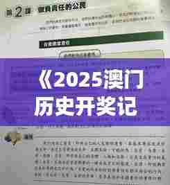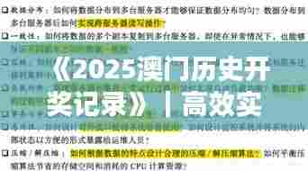 一、前言 随着彩票业的迅速发展,彩票的开奖记录已成为公众关注的焦点。作为负责任的彩票管理机构,我们高度重视对历史开奖记录的保存与管理,致力于维护彩票的公正、公开和透明度。为此,我们制定了《2025澳门历史开奖记录》实施文件,旨在规范历史开奖记录的保存、查询和发布流程,确保彩票发行、销售和开奖工作的规范性、安全性和可靠性。