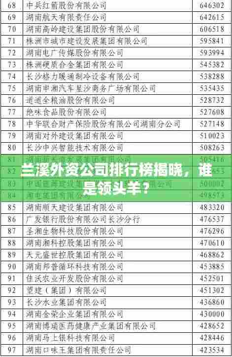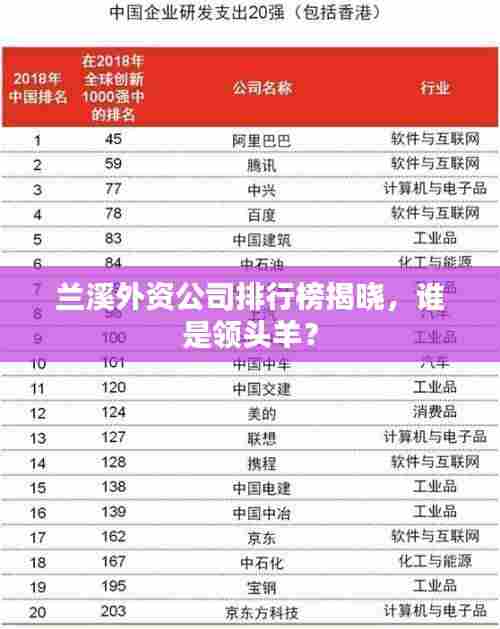 随着全球化的不断发展,外资企业在各地的经济建设中发挥着越来越重要的作用,兰溪市作为浙江省的一个重要城市,其外资企业的发展也备受关注,本文将为您揭示兰溪外资公司的排名情况,带您了解这些企业在当地的发展状况。
