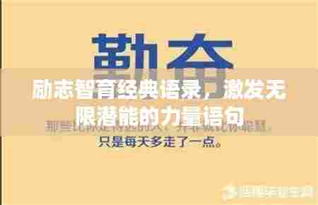 励志智育语录,是智慧和勇气的结晶,它们融汇了古今中外的名人名言、心灵鸡汤,以及普通人在生活中的感悟与体验,这些语录不仅激励我们勇敢面对挑战,还教会我们如何在生活中实现自我提升和成长。