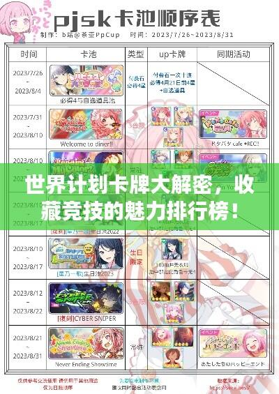 随着全球范围内卡牌文化的盛行,计划卡牌作为一种集换式卡牌游戏,逐渐受到越来越多人的喜爱,它们不仅考验玩家的策略布局能力,还融合了丰富的艺术风格,成为收藏家们追逐的珍宝,本文将带你了解世界计划卡牌排名,一起探索这一领域的无尽魅力。