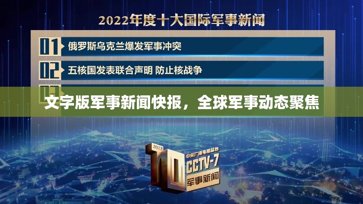 在当今信息化时代,军事新闻备受关注,为了更好地满足广大军事爱好者的需求,我们推出了文字版军事新闻头条号,聚焦全球军事动态,为您提供最新、最全面的军事信息。