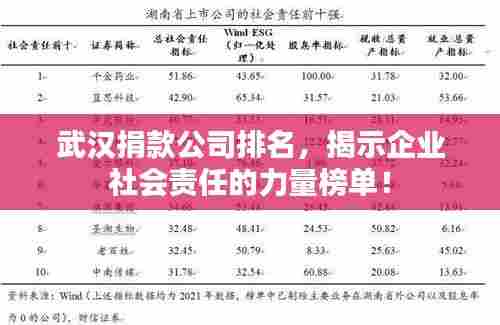 面对新冠疫情的严峻挑战,武汉作为疫情的中心地带,受到了全国乃至全球的关注与支持,在这场抗击疫情的战斗中,许多企业纷纷伸出援手,积极捐款捐物,为武汉抗击疫情贡献自己的力量,本文将介绍一些为武汉捐款的公司及其排名,展现企业社会责任的力量。