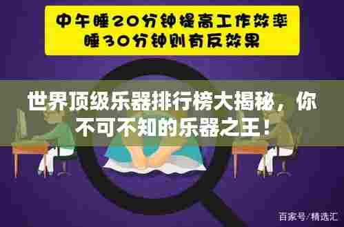 音乐是世界的语言,它能够跨越文化和地域的界限,抚慰人心,乐器则是音乐得以展现的载体,不同的乐器拥有各自独特的声音和魅力,在世界范围内,有一些乐器因其卓越的品质、深厚的历史和文化背景,被公认为顶级乐器,以下是世界公认顶级乐器的排名,让我们一起领略它们的魅力。