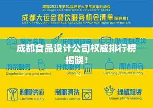 随着食品产业的快速发展,食品设计公司在其中扮演着越来越重要的角色,成都,作为中国的美食之都,其食品设计行业也是日益繁荣,本文将为您详细介绍成都食品设计公司的排名,带您了解这些公司的实力与特色。