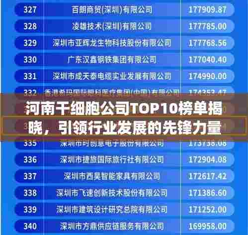 五至十名的河南干细胞公司同样表现出色,这些公司分别在干细胞技术研发、临床应用、产业化等方面取得了一系列成果,它们通过不断创新和努力,为河南干细胞产业的发展做出了积极贡献。