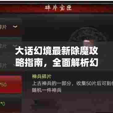 大话幻境作为一款深受玩家喜爱的游戏,其中的除魔任务更是游戏中的一大亮点,随着游戏版本的更新,除魔任务也迎来了全新的挑战与攻略,本文将为大家带来大话幻境除魔攻略的最新指南,帮助玩家更好地完成任务,提升游戏体验。