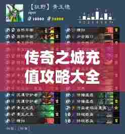 就是关于传奇之城的最新充值攻略,希望本文能帮助大家在传奇之城的游戏世界中更好地体验游戏,同时也提醒大家要理性消费,注意个人信息安全,祝大家游戏愉快!