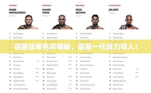 随着时代的变迁,德国足球界涌现出无数英勇的球员,他们凭借卓越的球技和坚定的意志,赢得了球迷们的喜爱和尊敬,德国最新一代的铁拳名将是谁呢?我们将为您揭晓。