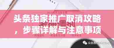 随着互联网的普及,头条独家推广成为了许多企业和个人宣传的重要方式之一,在某些情况下,我们可能需要取消这一推广,无论是出于成本考虑、策略调整还是其他因素,本文将指导您如何取消头条独家推广,帮助您更好地管理您的宣传计划。