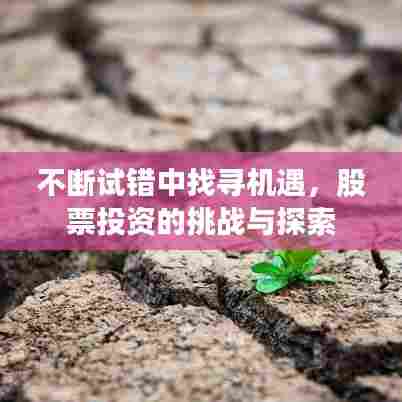 “不断试错的股票”虽然充满了挑战,但也为投资者提供了宝贵的机遇,投资者应通过充分研究、风险管理、保持冷静、长期投资视角和灵活应变等策略来应对挑战,抓住机遇,投资者还应注意,投资股市需谨慎,应根据自身的风险承受能力和投资目标来制定合理的投资策略。